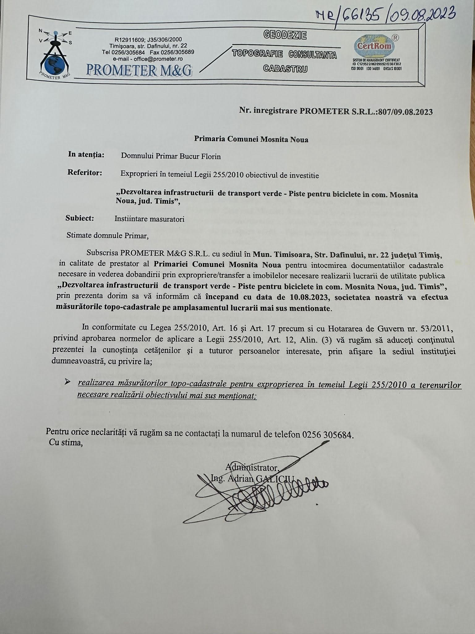 Anunt instiintare masuratori